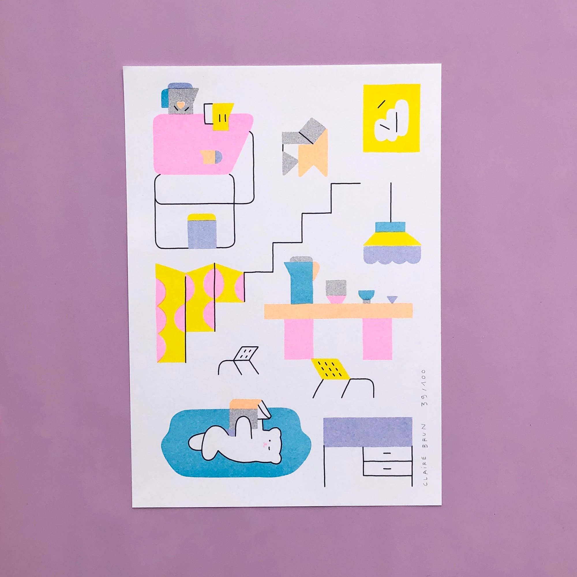 Risographie en 4 couleurs, papier Polar 150g, format A4, signée, numérotée, imprimée en 100 exemplaires par Magma éditions, Paris